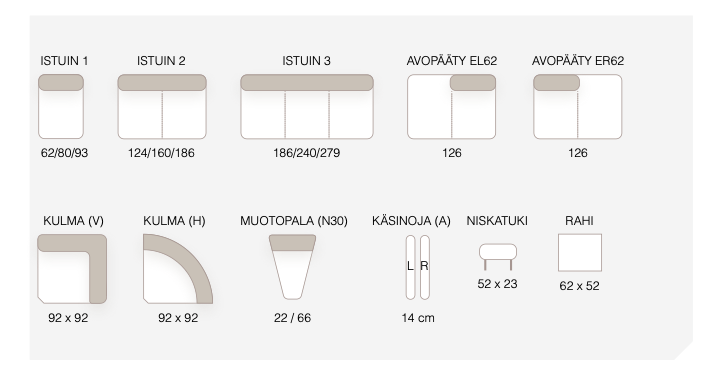 Upeasta Charles modulisohvasta rakennat juuri sinulle sopivan kokonaisuuden. Monipuolisen pala/moduli-valikoiman avulla voi tästä sohvasta rakentaa suoran sohvan monilla eri mitoilla, pienen kulmasohvan, kuvassa olevan muotokulmasohvan tai erittäin suuren kulmasohvan.