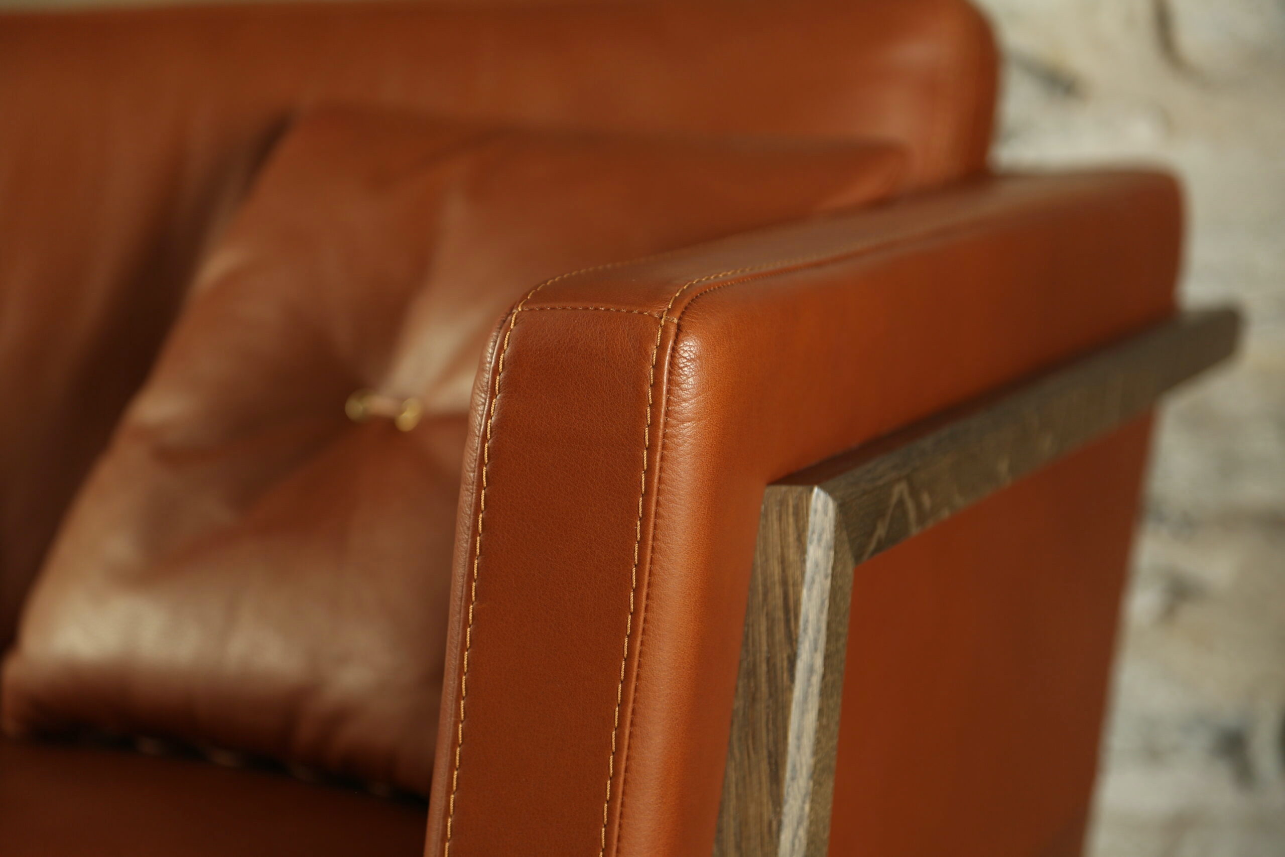 Sohvan istuintäytteet on valmistettu laadukkaasta muotoonvaletusta hr-vaahdosta ja pintapehmeyttä tuo tyynyn pintaan asetettu vanu. Selkätyynyjen mukava sekoitevanu antaa ryhdikkään mutta samanaikaisesti mukavan istumatuntuman. Suht lyhyen istumasyvyyden ansiosta sohvalla saa erittäin hyvän, ryhdikkään ja mukavan asennon. Nord sohva on tehty kestämään pitkään ja voit valita sohvaan kangas tai täysnahkaverhoilun. Nahka sekä kangasvaihtoehtoja on useita erilaisia. Kerro toivomasi materiaali tai sävy, niin voimme lähettää näytteet postissa. Kuvan upea italialainen aniline-sauvage nahka on pehmeä & ylellinen. Sävyt: konjakki (kuvassa), tummanruskea, musta, harmaanvihreä.