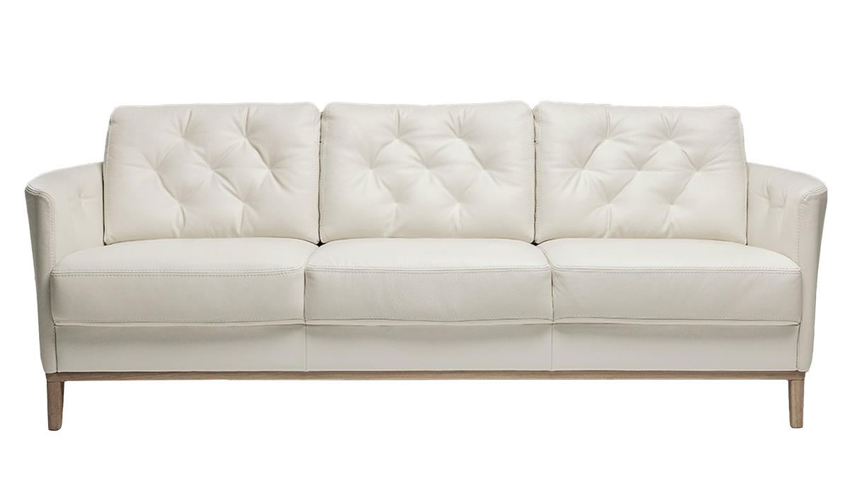 Saatavana useilla nahka -ja kangasvaihtoehdoilla. Koristesokkelin voi halutessaan jättää pois ja sohvan jalaksi voi valita metallin tai puun eri sävyissä. Perinteisestä ja kestävästä semianiline-nahasta löytyy lukuisia erilaisia sävyjä, hinta: etu 3270€ (3500€) etuhintaan valittavana 30 erilaista nahkasävyä, myös erikoisvärit!