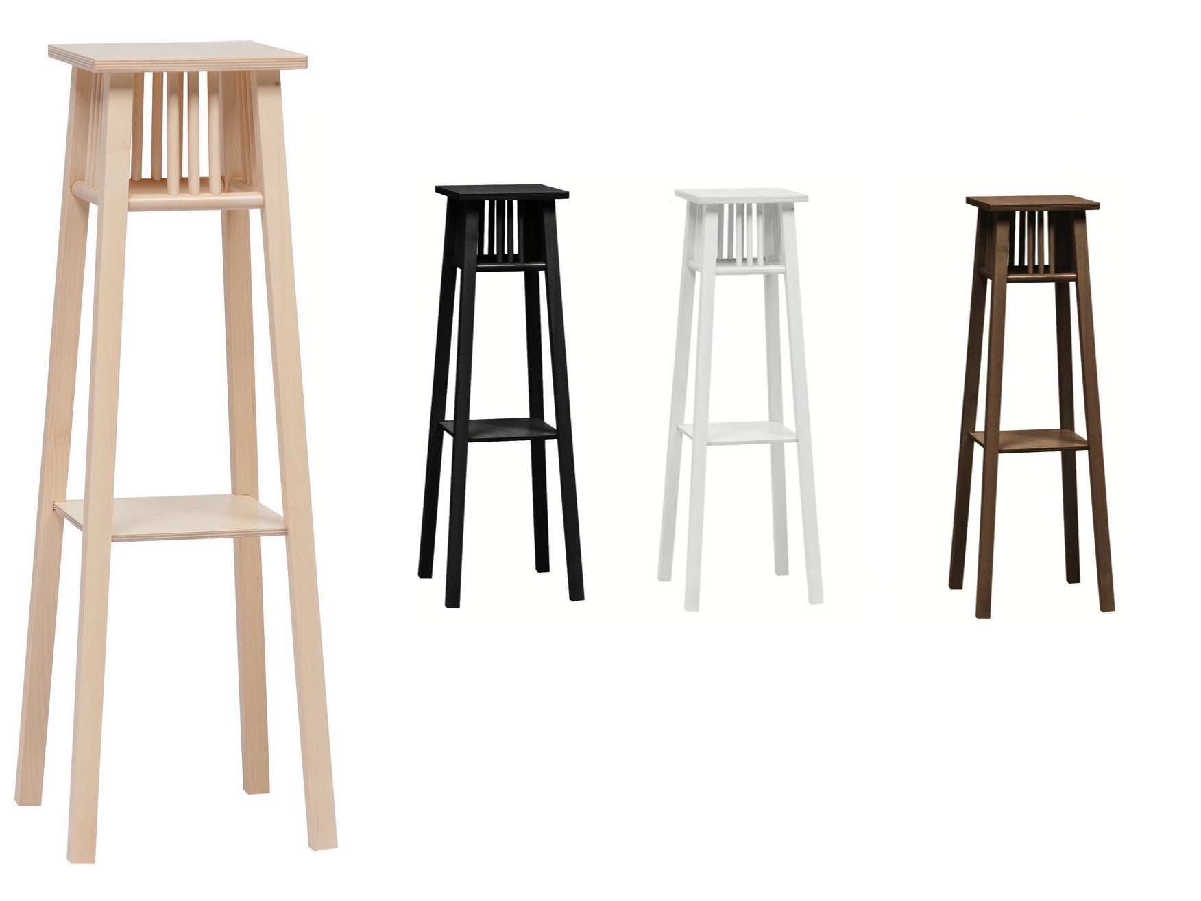 Tälle kukkatelineelle voit asetella lempi viherkasvit tai kukat kodin paraatipaikalle. Siro kokoinen mutta tukeva perinteinen pylväs mallinen kukkataso. Kukkien lisäksi toimii yhtälailla myös sivu laskutasona tai pöytänä. Saatavilla värit: koivu luonnonväri, musta, valkoinen ja ruskea. Tuote toimitetaan valmiiksi kasattuna.