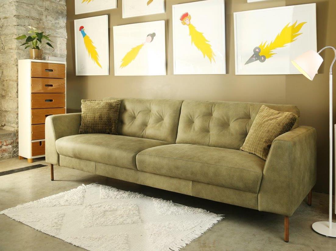 Line sohva on tehty kestämään pitkään ja voit valita sohvaan kangas tai täysnahkaverhoilun. Nahka sekä kangasvaihtoehtoja on useita erilaisia. Kerro toivomasi materiaali tai sävy, niin voimme lähettää näytteet postissa. Kuvan vihertävä nahka on ”antiikkinahka” jossa eläväisyys ja pehmeys luovat yhdessä ainutlaatuisen tuntuman. Italialainen täysnahkaverhoilu on aitoa nahkaa parhaimmillaan ja sen olemus vain oikeastaan paranee ajan myötä.